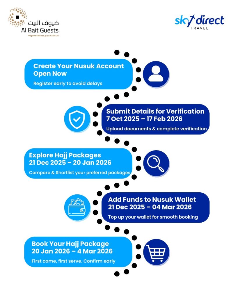 Currently 2026 package bookings are not yet available on the Nusuk platform. Stay informed on all Hajj-related updates by registering your interest with us.